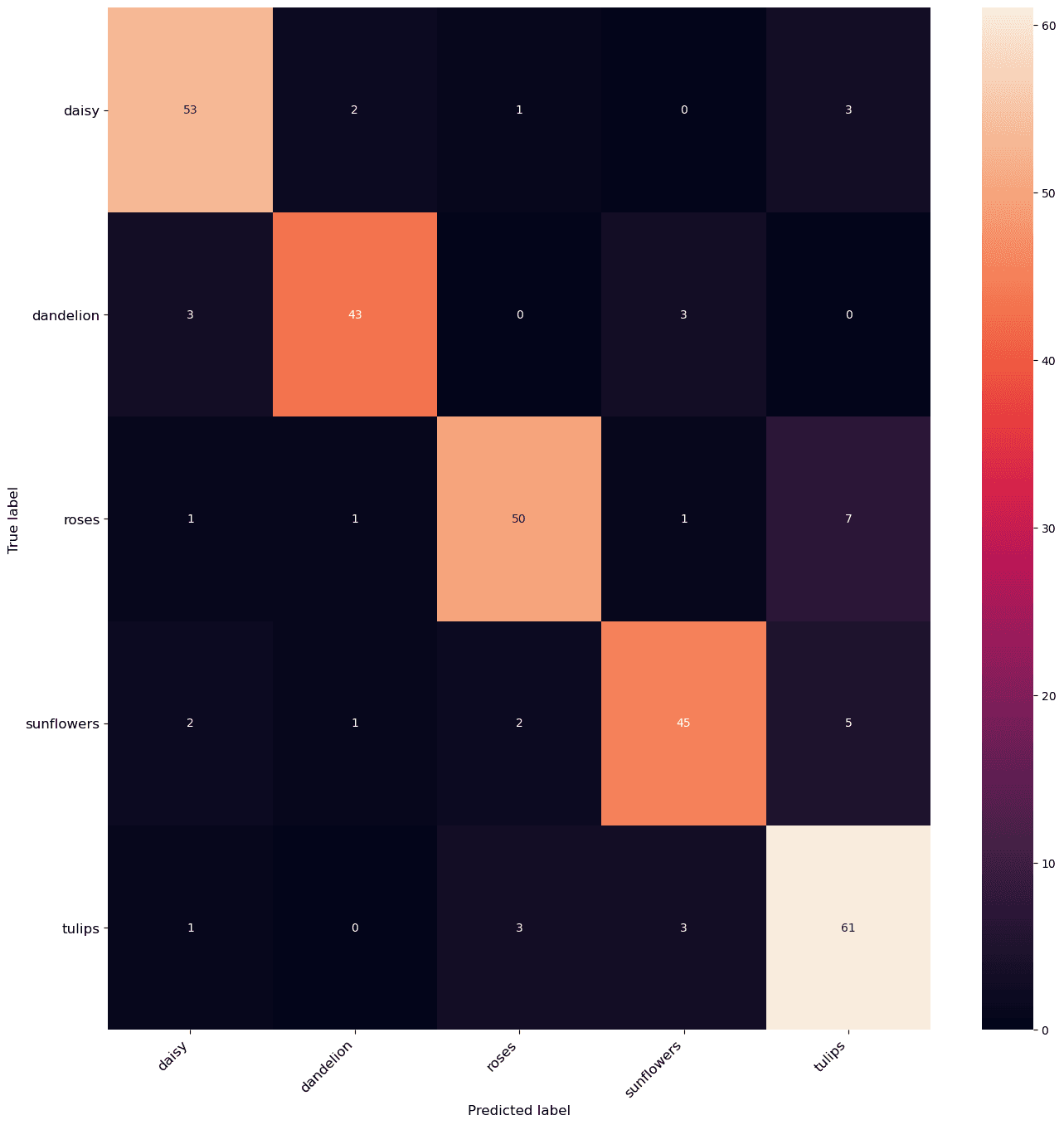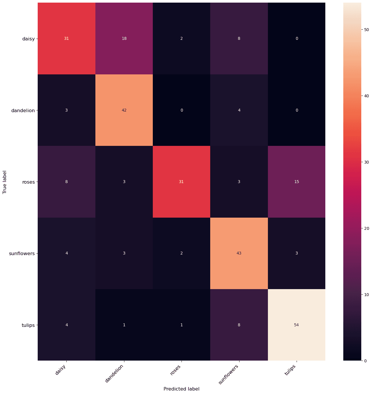 The squares on the diagonal are correct predictions; the rest are incorrect. In a perfect scenario, the squares representing incorrect predictions would be completely black.