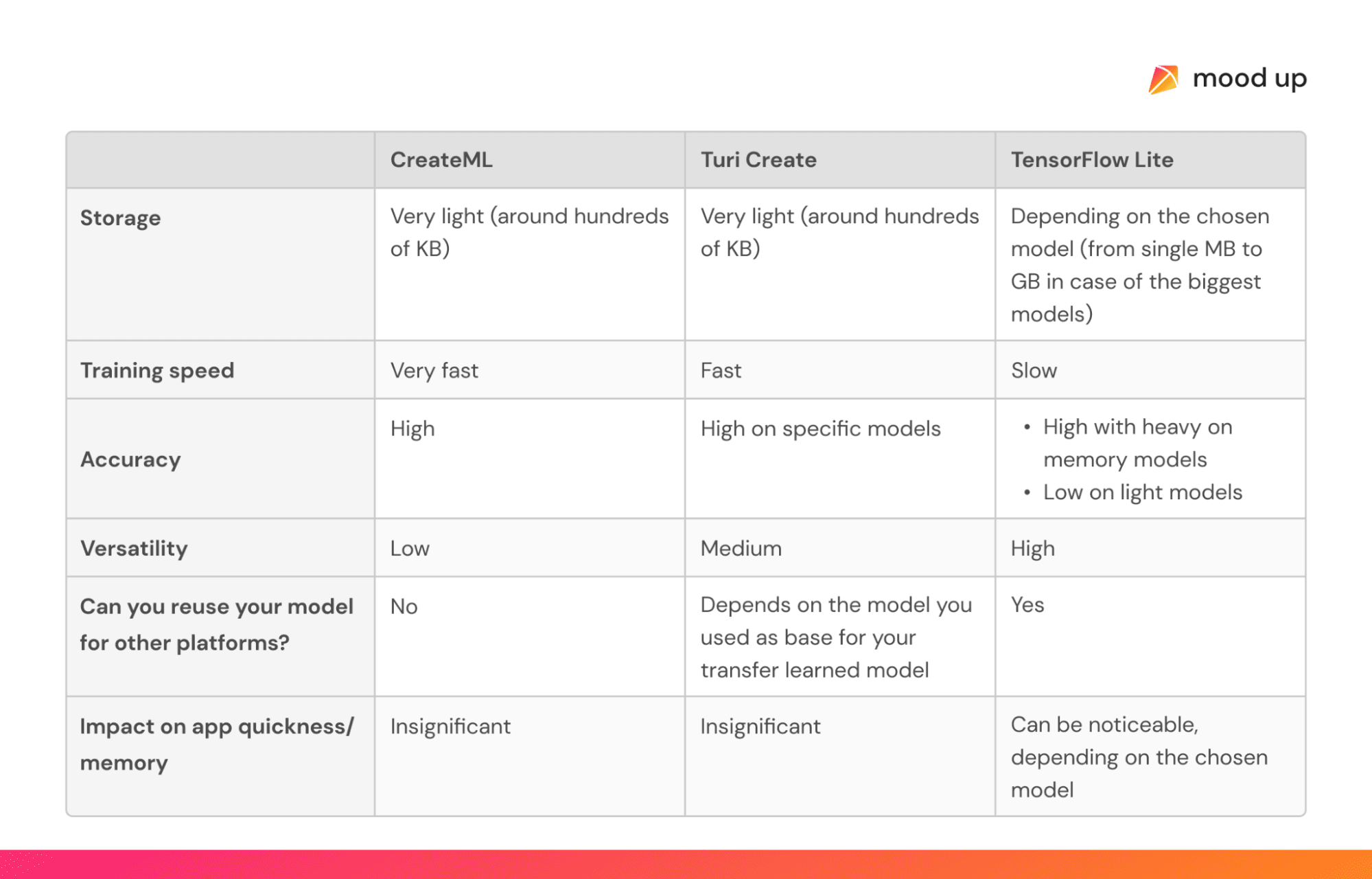 Analysis and Comparison of Machine Learning Solutions for iOS Platform