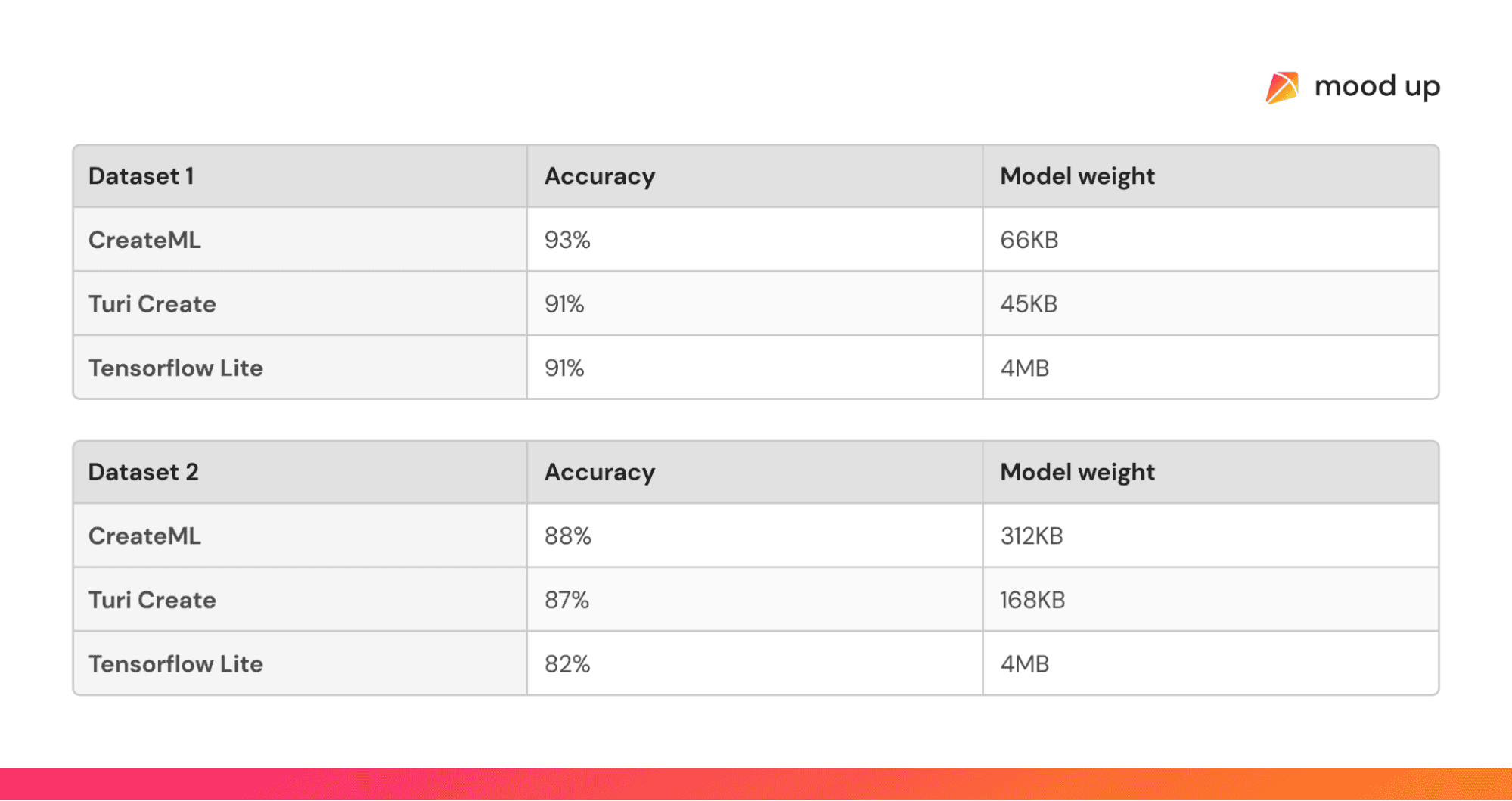 We got higher accuracy results for TensorFlow lite using base models with noticeably higher memory footprint (tens or even hundreds of times bigger; those models can give really good results depending on your use case).