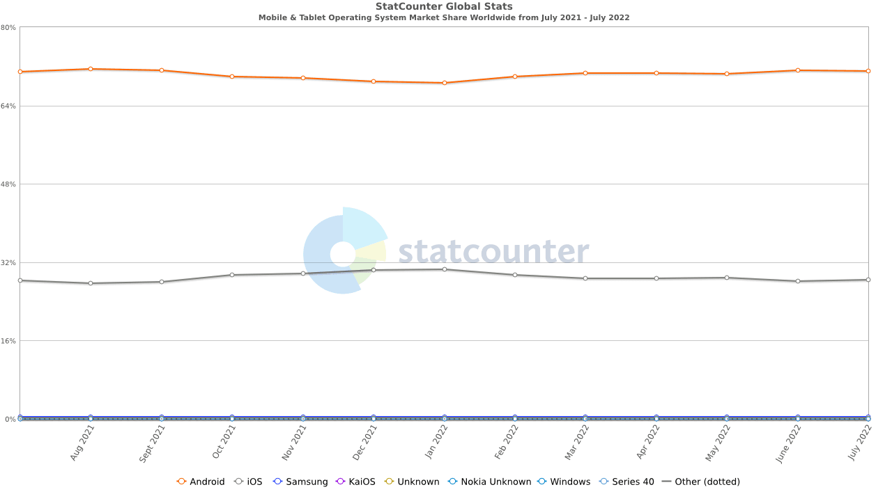 The average time spent daily on a smartphone in the United States in 2021 was 5 ½ hours a day. That’s almost 84 days in a year, that is fought over by Android and iOS, who together control almost entire mobile operating system market.
