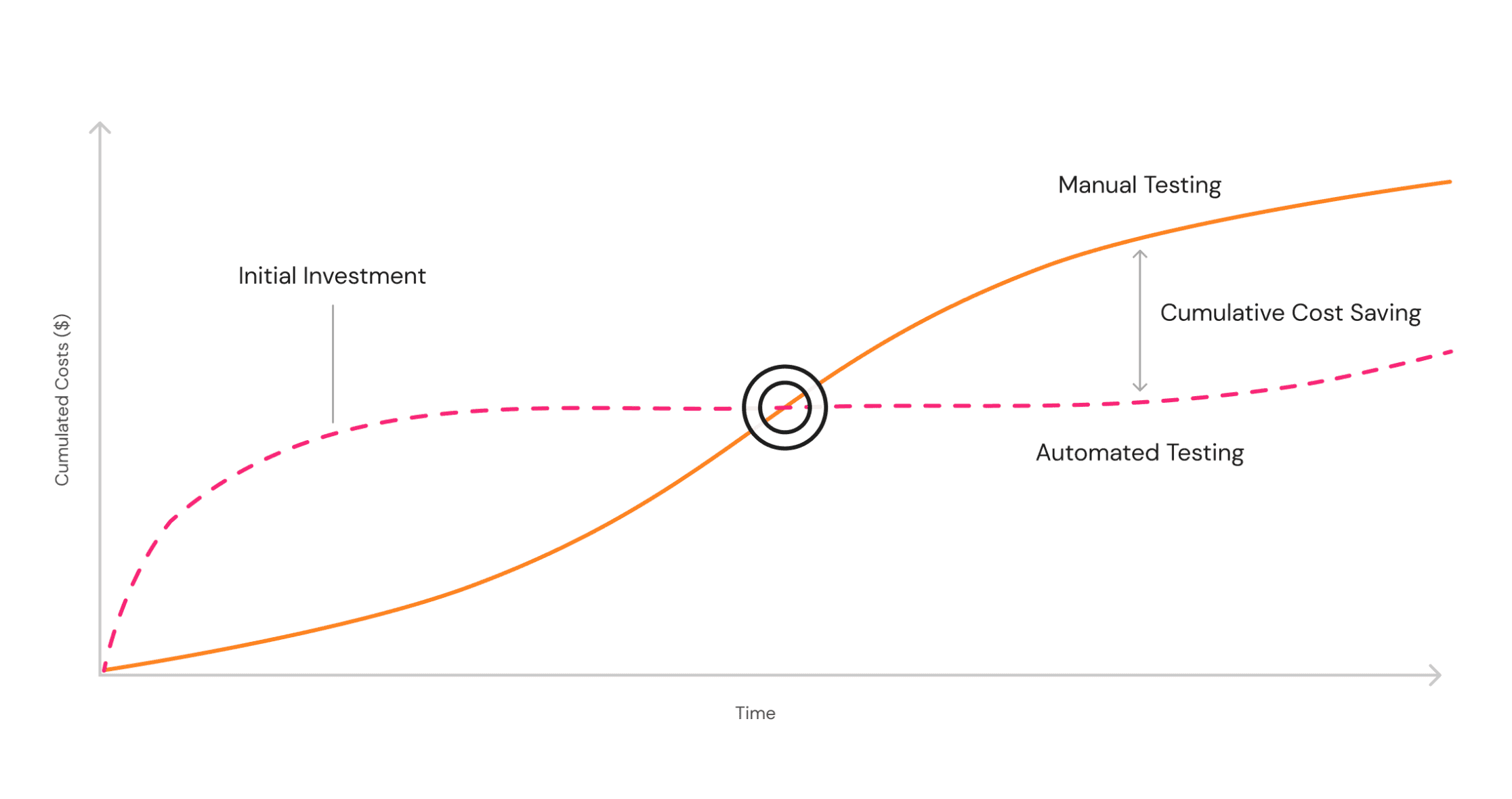 The development and maintenance of automated tests takes much longer than manual testing. But the value of putting effort and money into it grows with every test run. Automatic testing can be run an unlimited number of times. It shows software defects almost instantly after they are introduced.